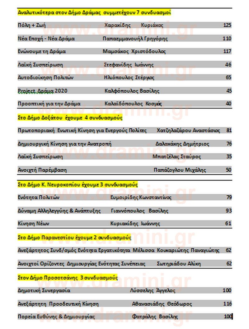 Οι παραπάνω αριθμοί υποψηφίων προέρχονται από τα επιτελεία του κάθε συνδυασμού και μπορεί να παρουσιάζουν μικρή, ουδόλως σημαντική όμως, απόκλιση.
