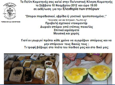 Πελίτι Κομοτηνής: Eκδήλωση για την ελευθερία των σπόρων