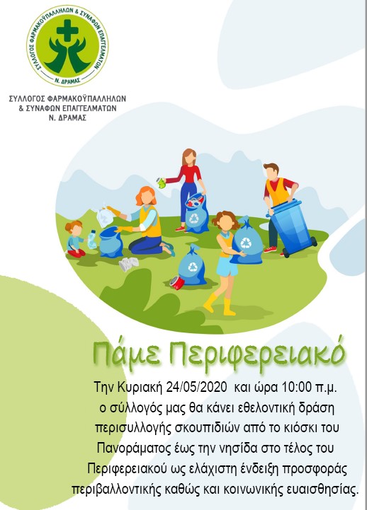 Ο σύλλογος φαρμακουπαλλήλων και συναφών επαγγελμάτων  ν. Δράμας, διοργανώνει  περιβαλλοντική δράση αύριο Κυριακή 24 Μαΐου.