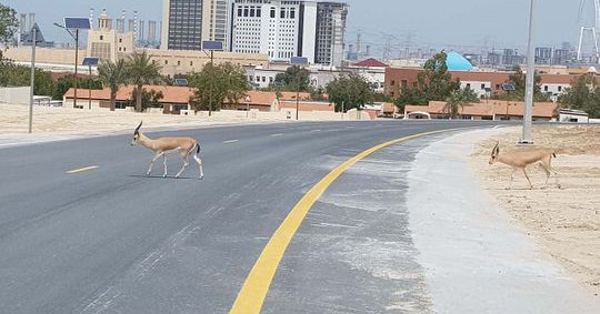 Οι γαζέλες διασχίζουν έναν δρόμο που υπό άλλες συνθήκες θα ήταν απροσπέλαστος στο Ντουμπάι, όπου το τελευταίο διάστημα βρίσκεται σε lockdown.
