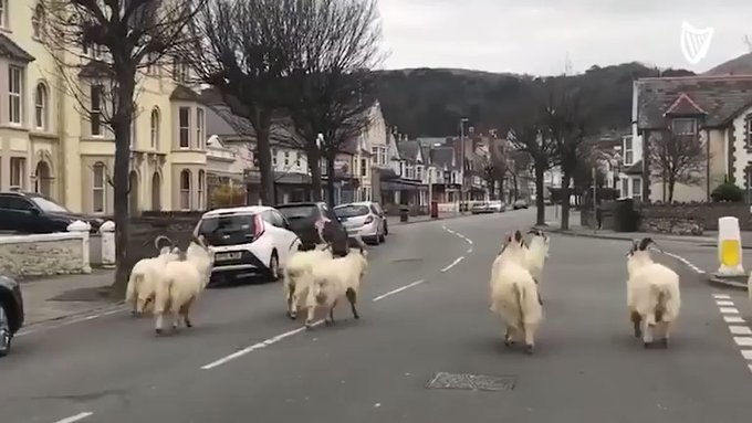 Ένα κοπάδι από κατσίκες, άφησε τα λιβάδια και τους αγρούς και περπατά στους άδειους δρόμους πόλης της Ουαλίας.
