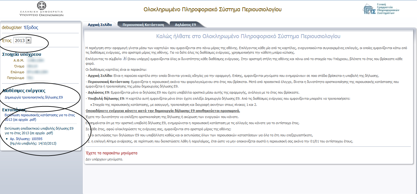 - Επιλέξτε το έτος που θέλετε να υποβάλλετε Ε9 και από τις διαθέσιμες ενέργειες της αρχικής σελίδας, επιλέξτε δημιουργία δήλωσης Ε9 για να προβείτε στις απαραίτητες τροποποιήσεις της περιουσιακής σας κατάστασης.