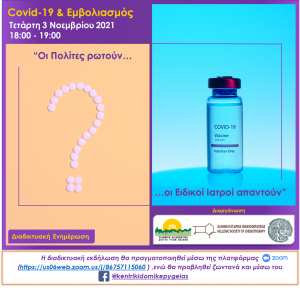 Η εκδήλωση θα πραγματοποιηθεί διαδικτυακά την Τετάρτη 3 Νοεμβρίου 2021 και ώρα 18:00 – 19:00 και οι πολίτες θα έχουν την δυνατότητα να την παρακολουθήσουν.