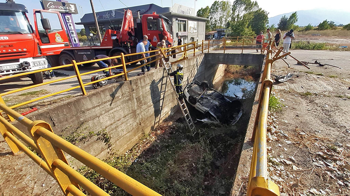 Σύμφωνα με τις πρώτες πληροφορίες, ο οδηγός προσπάθησε να κάνει προσπέραση και για άγνωστους -μέχρι στιγμής- λόγους έχασε τον έλεγχο του αυτοκινήτου, το οποίο προσέκρουσε πάνω στα μεταλλικά κιγκλιδώματα της γέφυρας και στη συνέχεια έπεσε μέσα στο αρδευτικό κανάλι.