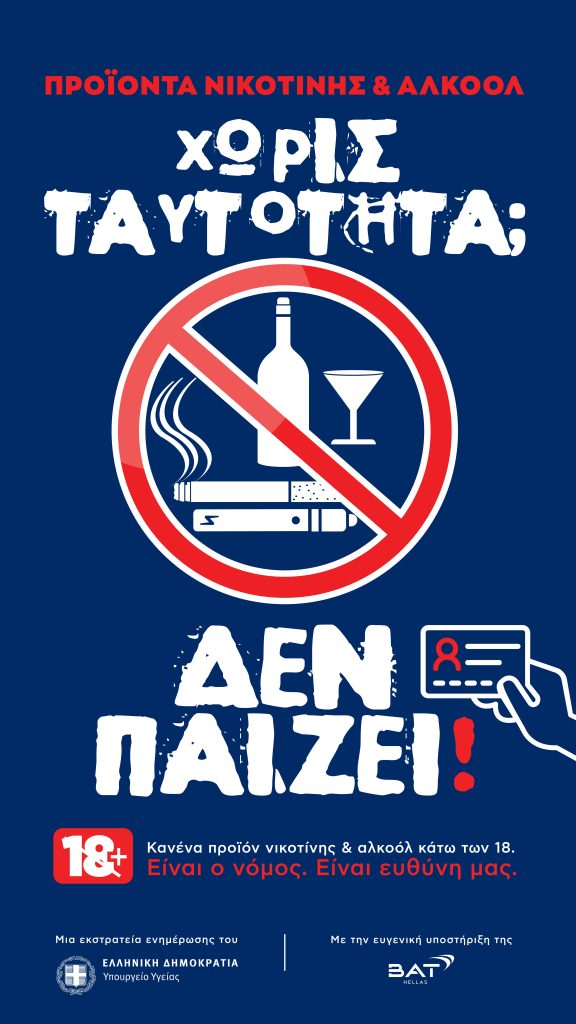 «Προϊόντα νικοτίνης και αλκοόλ χωρίς ταυτότητα; Δεν παίζει!» – Νέα εκστρατεία ενημέρωσης με την ευγενική υποστήριξη της BAT Hellas
