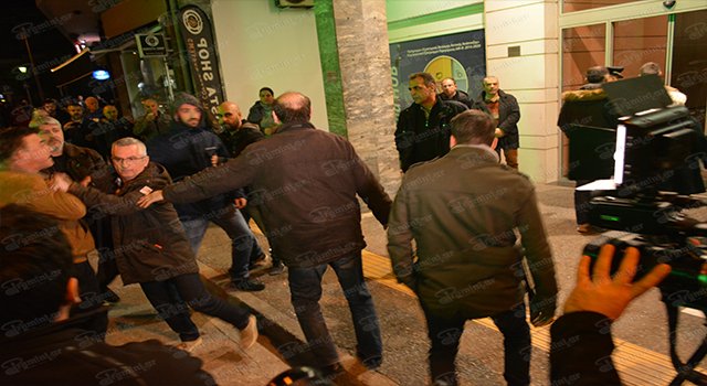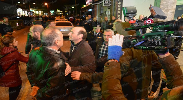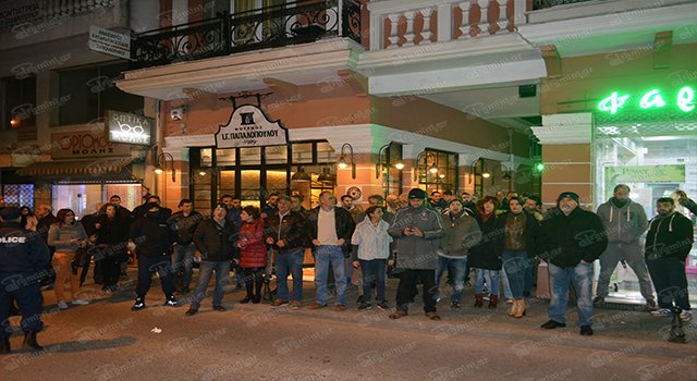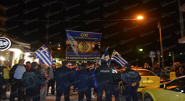 Η ομάδα περίπου εβδομήντα ατόμων που είχε συγκεντρωθεί έξω από το Επιμελητήριο, δεν σταμάτησε να φωνάζει συνθήματα, καθ όλη την διάρκεια που πραγματοποιούνταν η εκδήλωση, τραγουδώντας το «Μακεδονία ξακουστή». Με το πέρας της εκδήλωσης, η ομάδα των διαδηλωτών και μετά την αποχώρηση του Υπουργού Οικονομίας κ. Τσακαλώτου, διαλύθηκε.