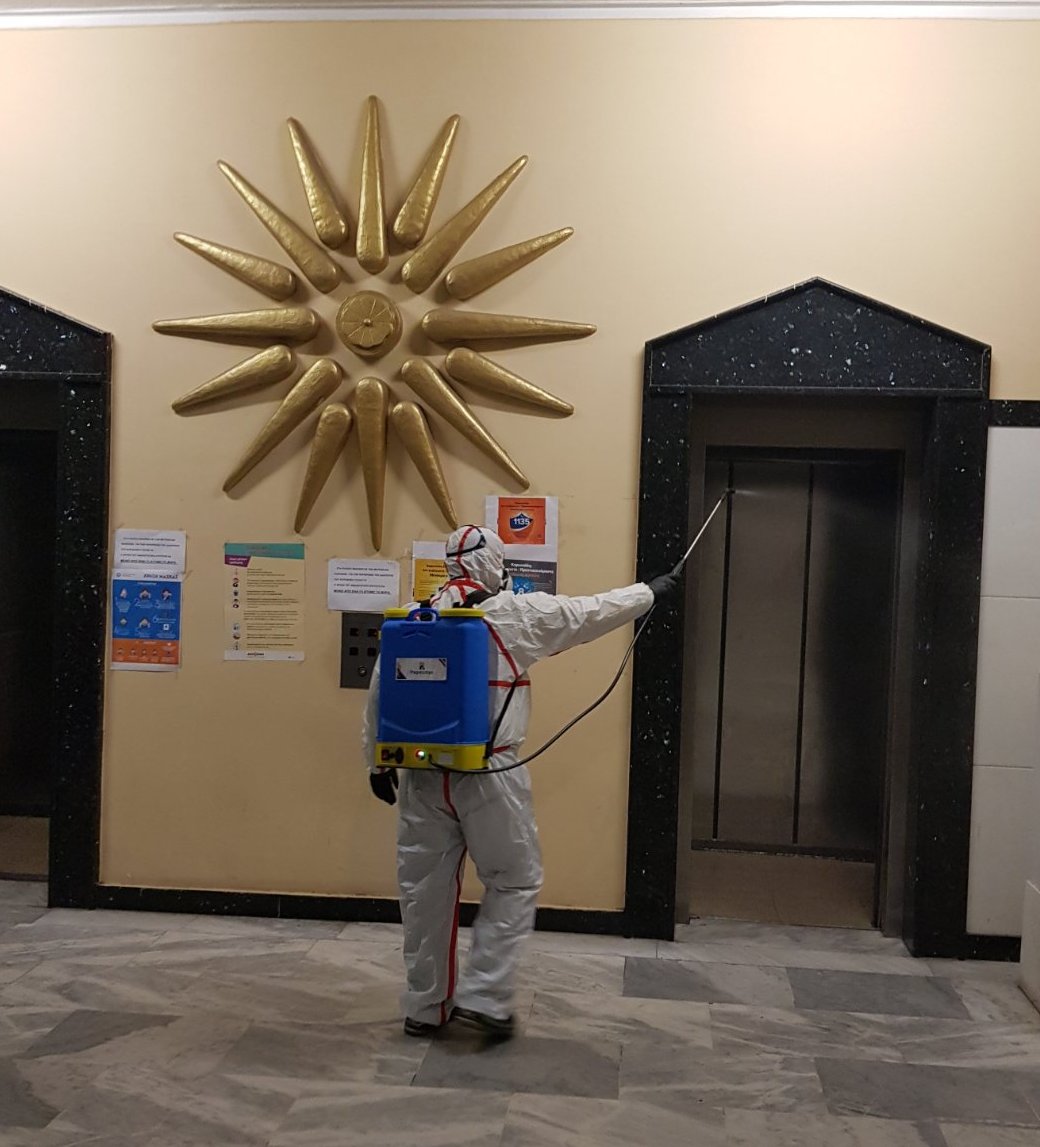 Στην Δράμα και στο πλαίσιο των μέτρων πρόληψης κατά της διασποράς του κορωνοϊού COVID-19, η Αντιπεριφέρεια, προχώρησε με ειδικό συνεργείο σε απολύμανση των εσωτερικών κοινόχρηστων χώρων του κτηρίου του Διοικητηρίου Δράμας (διάδρομοι, ασανσέρ, σκάλες, τουαλέτες κ.λ.π.).