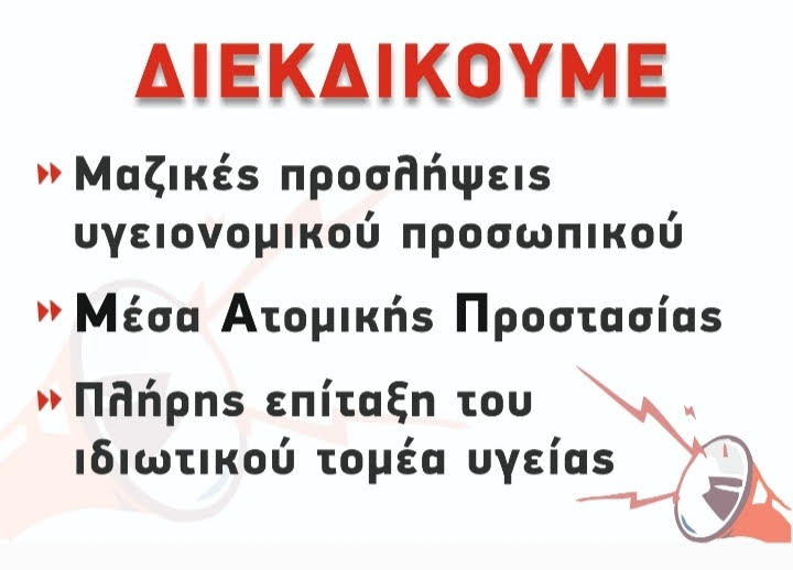 * Διεκδικούμε μαζικές προσλήψεις μονίμων γιατρών, νοσηλευτών και λοιπών υγειονομικών