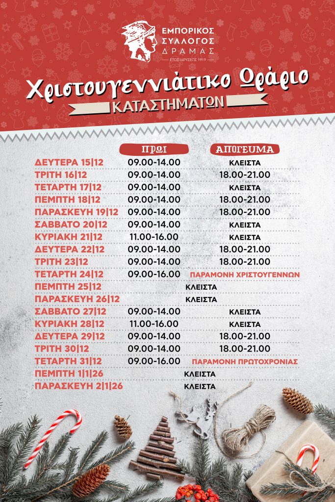 Ωράριο καταστημάτων της αγοράς της Δράμας
