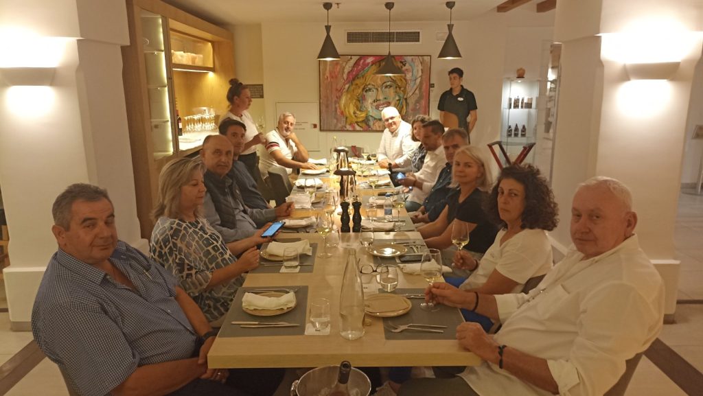 Το βράδυ το ξενοδοχείο Hydram δεξιώθηκε την ομήγυρη σε ένα δείπνο οινογνωσίας και γευσιγνωσίας με τα εξαιρετικά κρασιά της περιοχής μας συνοδευόμενα από κατάλληλα εδέσματα. Κατά τη διάρκεια της επίσκεψής τους, αντάλλαξαν απόψεις και εμπειρίες για την ανάπτυξη των περιοχών μας.
