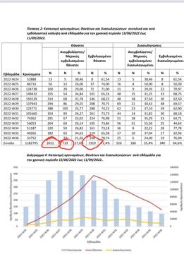 Στοιχεία του ΕΟΔΥ , που συνοδεύονται από τις αντίστοιχε φωτο εγγράφων , έδωσε στην δημοσιότητα μέσα από τον προσωπικό του λογαριασμό στο FB ο π. υπουργός υγείας Παύλος Πολάκης τα οποία δεν ανακοίνωσε όμως το υπουργείο. Σύμφωνα λοιπόν με τα επιδημιολογικά στοιχεία για τον Covid-19 που απέστειλε ο ΕΟΔΥ στο ΣτΕ στις 13.10.2022 :