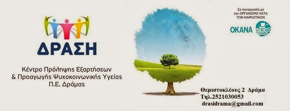 Το Κέντρο Πρόληψης «Δράση» Δράμας λοιπόν, με αφορμή αυτήν την ημέρα, βρίσκεται κοντά στους Δραμινούς πολίτες και υπενθυμίζει ότι μέσα από ατομικά ραντεβού, και μέσα από ομαδικές συναντήσεις, παρέχεται η δυνατότητα συμβουλευτικής και ψυχολογικής υποστήριξης στους ενδιαφερόμενους, σε θέματα που έχουν να κάνουν με την διαχείριση του άγχους και άλλων συναισθημάτων , εξαρτήσεων, συγκρούσεων στην οικογένεια, επικοινωνίας στην οικογένεια, βελτίωση της συντροφικής σχέσης, της προσωπικής ανάπτυξης κ.α.