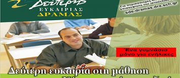 Δημοσιεύθηκε στις 5 Σεπτεμβρίου 2019 | Χωρίς σχόλια.Σας ενημερώνουμε ότι ξεκίνησαν από 1η Σεπτεμβρίου 2019 οι εγγραφές στο Σχολείο Δεύτερης Ευκαιρίας Δράμας (ΣΔΕ Δράμας). Το Σχολείο απευθύνεται σε άτομα ηλικίας 18 ετών και άνω, που δεν έχουν και θέλουν να αποκτήσουν απολυτήριο Γυμνασίου. Η συνολική διάρκεια φοίτησης στο σχολείο είναι δύο μόνο […] -