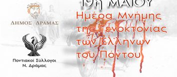 Δημοσιεύθηκε στις 17 Μαΐου 2019 | Χωρίς σχόλια.Το Σάββατο 18 Μαΐου 2019, στις 6:30 το απόγευμα, στα πλαίσια της Ημέρας Μνήμης της Γενοκτονίας των Ελλήνων του Πόντου,( 100 χρόνια από την γενοκτονία- GENOCIDE), θα γίνουν τα αποκαλυπτήρια μνημείου, στον Δημοτικό Κήπο, επί της Πατριάρχου Διονυσίου. Ένα έργο που πραγματοποιήθηκε με την συμβολή […] -