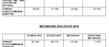 Δημοσιεύθηκε στις 23 Αυγούστου 2019 | Χωρίς σχόλια.Αύξηση της ανεργίας τον μήνα Ιούλιο δε διαπίστωσε μόνο η Εργάνη αλλά και ο ΟΑΕΔ, σύμφωνα με την Ένωση για την Υπεράσπιση της Εργασίας και του Κοινωνικού Κράτους (ΕΝΥΠΕΚΚ). Με βάση με τα τελευταία στοιχεία κατά 65.456 άτομα αυξήθηκαν οι άνεργοι σε σχέση με τον […] -