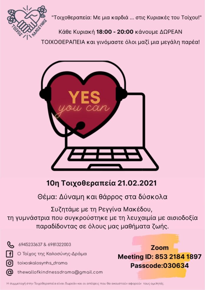 Τοιχοθεραπεία για «Δύναμη και θάρρος στα δύσκολα»-Κυριακή 21 Φεβρουαρίου