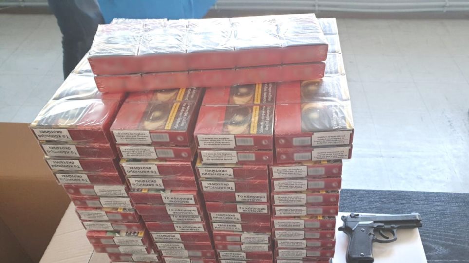 Οι αστυνομικοί εντόπισαν 410 πακέτα τσιγάρων και ένα πιστόλι κρότου με ένα φυσίγγιο