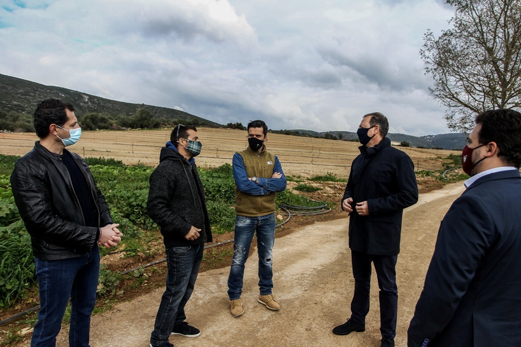 Ο υπουργός Αγροτικής Ανάπτυξης και Τροφίμων κ. Λιβανός, συνοδευόμενος από τον αρμόδιο υφυπουργό κ.  Γιάννη Οικονόμου και τον ΓΓ Γιώργο Στρατάκο, επισκέφθηκαν αγρόκτημα στο Μαραθώνα στο οποίο καλλιεργούνται κηπευτικά.